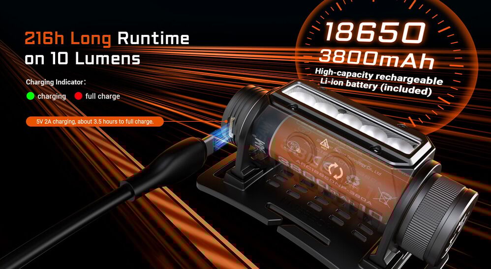 - Red light delivers max 200 lumens and throws up to 63 meters, ideal for hunting and preserving night vision - Convenient USB-C charging port, 5V 2A charging, about 3.5 hours to get fully charged