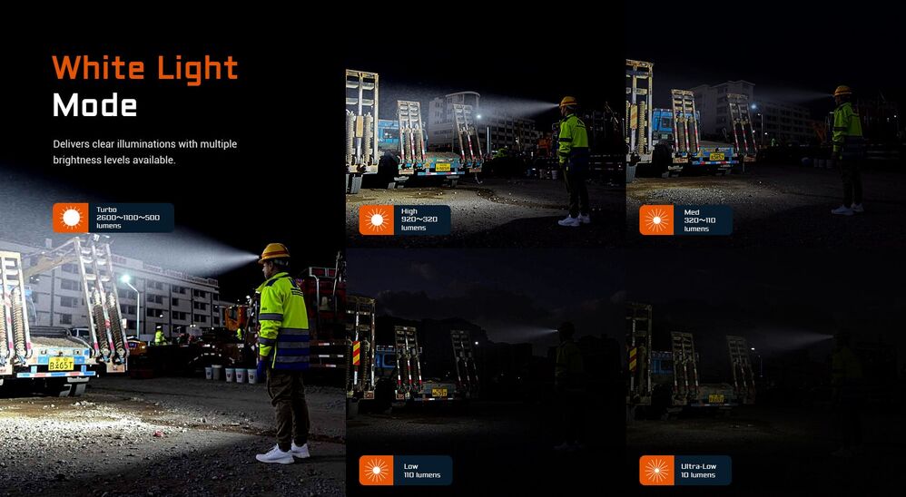 - White light has 5-level brightness, offering clear illumination with simple Mode Switching.