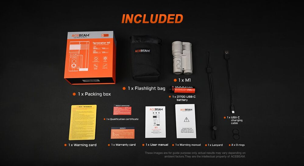 - Built-in: One ACEBEAM USB-C rechargeable 21700 lithium-ion battery