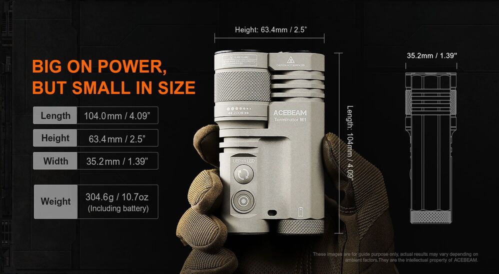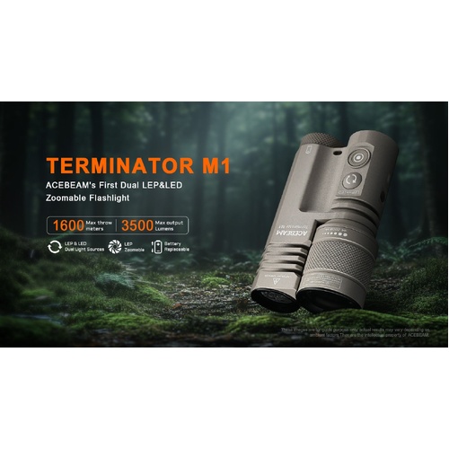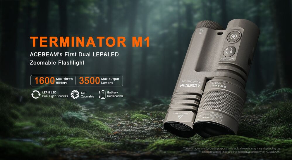 The ACEBEAM Terminator M1 is about to change the way you think about flashlights. Combining the LEP and LED technologies, it is far more versatile than a single-source flashlight. The 3,500-lumen LED floodlight brightens up a wide area in your path. The 1,600-meter LEP spotlight delivers incredible precision, letting you focus on distant targets with laser-like accuracy. Plus, the LEP spotlight is zoomable, so you can easily adjust from a long-distance spotlight to a wider beam to light up larger spaces. With its rechargeable and replaceable USB-C 21700 Li-ion battery, this flashlight is perfect for long trips or emergencies where power is scarce but you still need light. The flashing Strobe mode helps you stand out in the dark, ensuring you're seen when you need help. The Terminator M1 is ready for anything, keeping you prepared and in control!