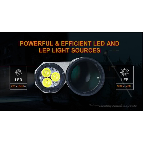 - Dual LED and LEP light sources provide you with high-power spotlights and floodlights.